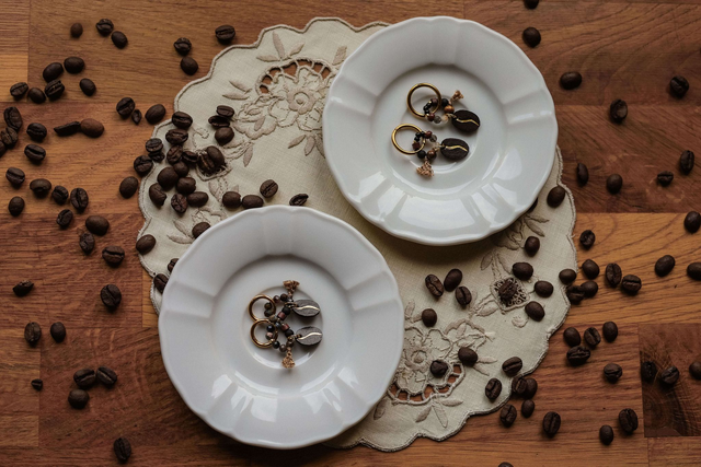 Delikatne kolczyki z koralikami i ręcznie malowanymi zawieszkami w kształcie ziarenek kawy.