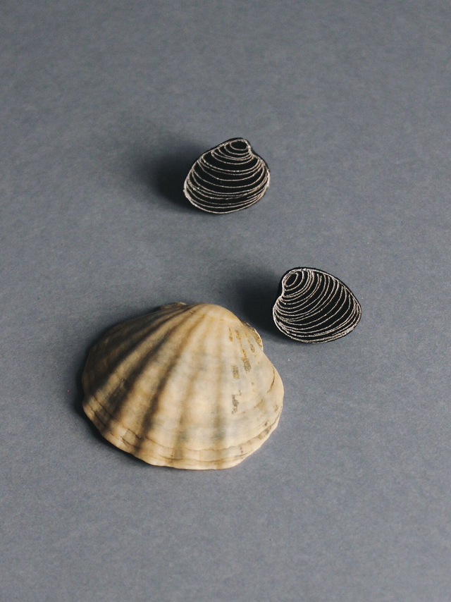 Srebrny wzór muszelki jest przeze mnie odręcznie wykonany, a to sprawia, że każdy kolczyk delikatnie się różni, jest jedyny w swoim rodzaju.