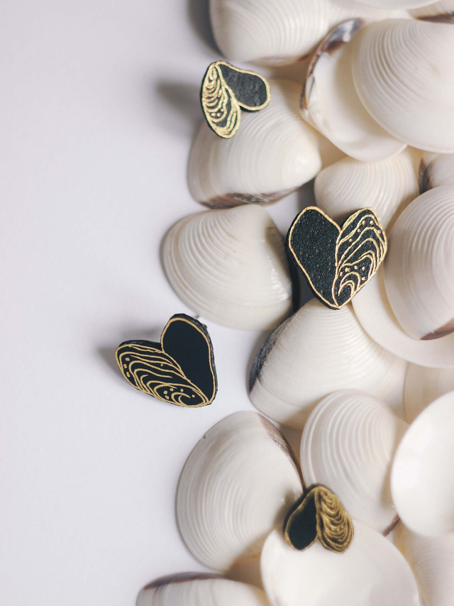Wyjątkowe kolczyki ostrygi - małe serduszka - kolekcja "Słona"