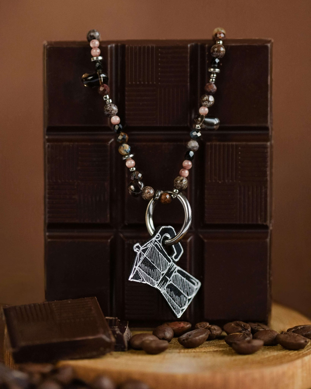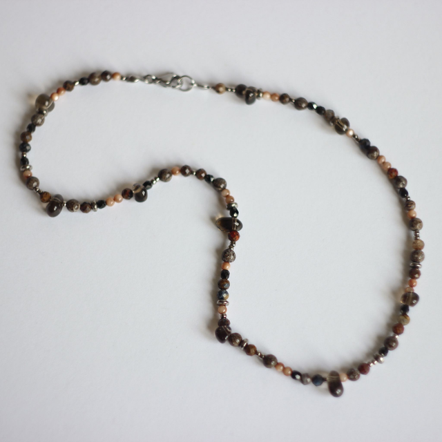 Naszyjnik w chłodniejszych odcieniach brązu z kropelką srebra. Piękny, delikatny.